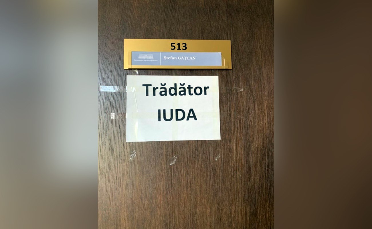 FOTO // RĂZBUNAREA socialiștilor? Ce INSCRIPȚIE a apărut pe ușa parlamentarului Ștefan Gațcan, care a aderat astăzi la „Pro Moldova”