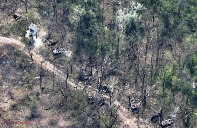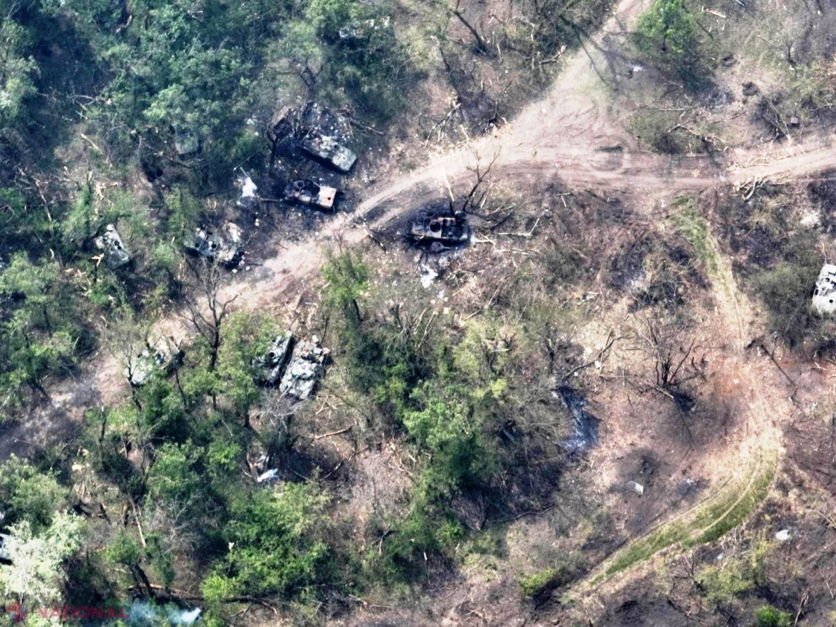 FOTO // Scene groaznice din locul în care armata lui Putin a suferit cea mai mare ÎNFRÂNGERE. Un câmp din Ucraina e plin de tancuri arse și trupuri carbonizate ale soldaților ruși