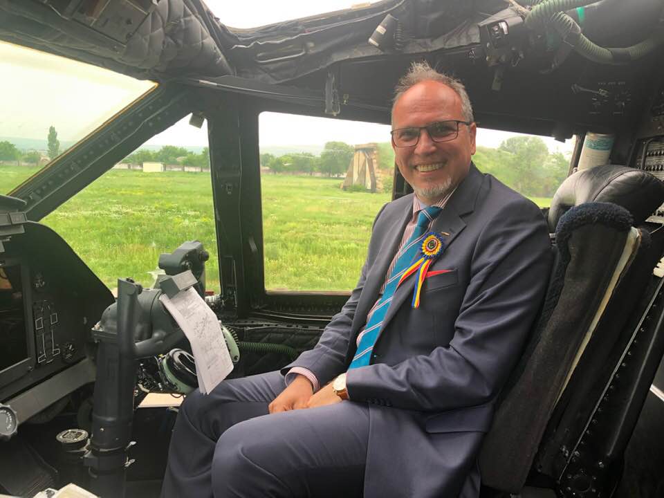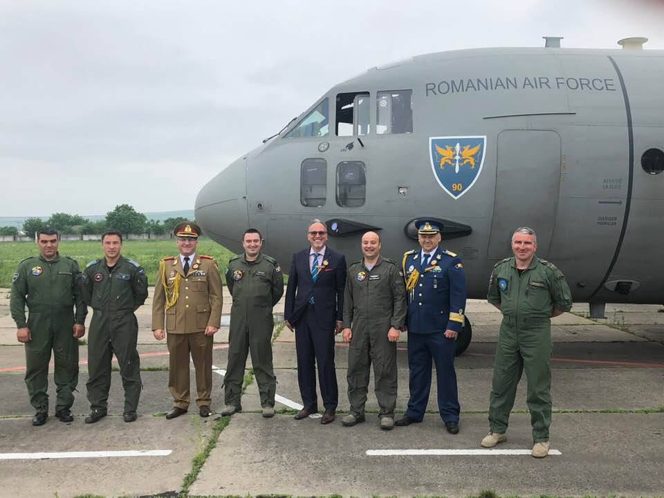 „La aeroportul Mărculești, alături de echipajul aeronavei C27 Spartan, care a participat la mitingul aviatic. Felicitări, bravi Ostași!”, a scris diplomatul pe Facebook.