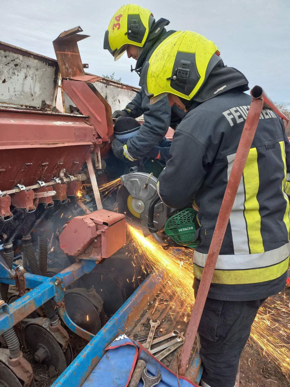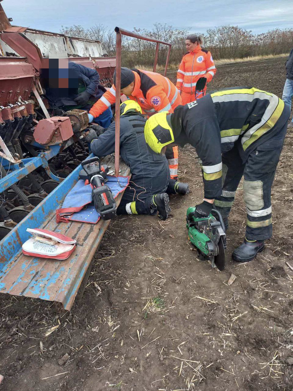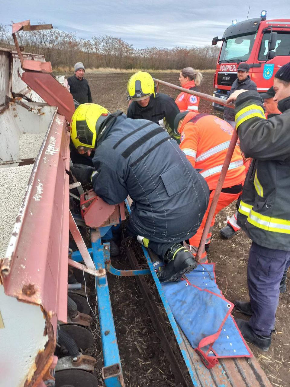 FOTO // Un bărbat de la Orhei, la un pas să fie „tocat” de fiarele unei semănătoare: A fost nevoie de dezmembrarea utilajului pentru a salva victima