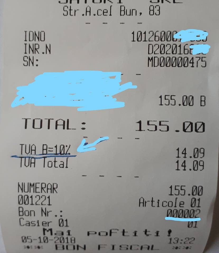 Acesta a continuat cu partea proastă a problemei. „Respectabila locație de pe „pietonală” mi-a eliberat bonul doar după ce am solicitat expres (la plecare, deși achitasem cu minute bune înainte). Iar faptul că numerotația arată că este abia al 2-lea bon eliberat astăzi (ora 13.22) vorbește despre multe. Eu nu voi mai merge în acel local. Fiscul – dimpotrivă, îi va ruga foarte insistent să se conformeze”, a adăugat Chicu.