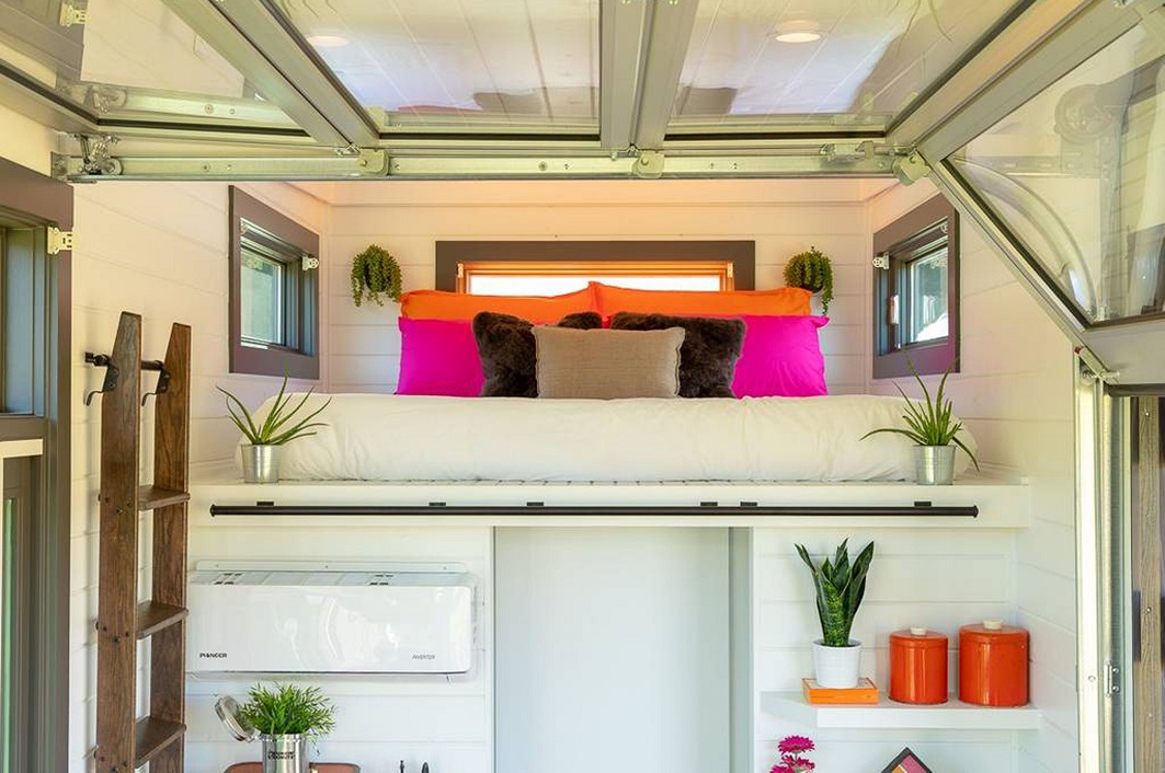 Interiorul a fost conceput în colaborare cu actrița Olivia Wilde și include mobilier multifuncțional, o bucătărie dotată cu tot ce este necesar, un living pentru două persoane, podea din lemn de nuc și o mică verandă cu podea din lemn de cedru.