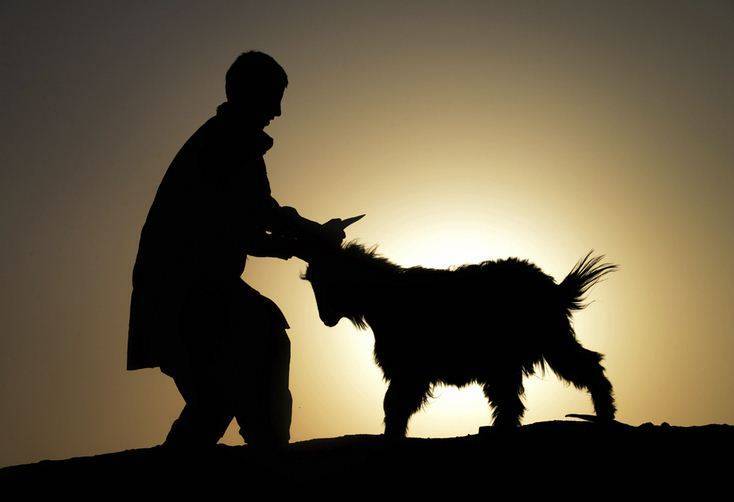 Un bărbat afgan duce o capră pentru a fi sacrificată cu ocazia festivalului Eid al-Adha, la piaţa de animale, la marginea oraşului Herat, joi, 2 octombrie 2014.