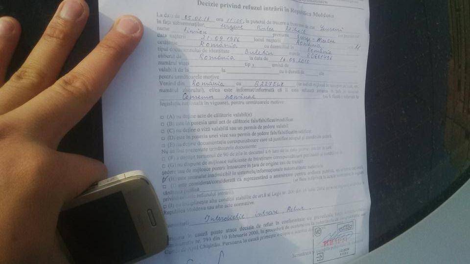 „Unirea nu place oligarhilor de la Chișinău. Este regretabil că, în timp ce oficialii de la Chișinău vin, cu coada între picioare, să ceară bani de la România, cetățenilor români li se interzice să călătorească în R. Moldova. Este pentru a treia oară când mi se întâmplă asta. Poate e cazul să se expună și CEDO”, a mai spus tânărul.