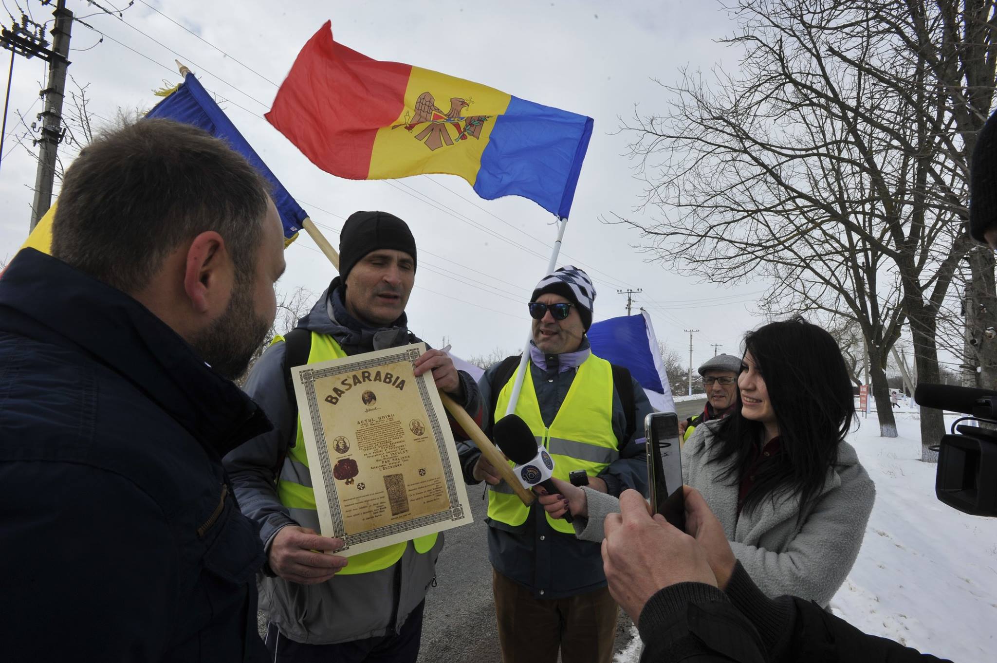 GEST // Steagul Unirii a trecut Prutul, fiind adus de doi nevăzători