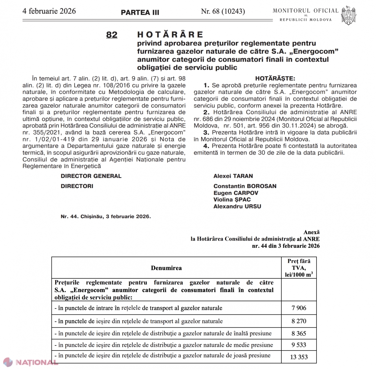 ULTIMA ORĂ // Ieftinirea gazului, în vigoare. Decizia ANRE privind noul tarif a fost publicată de URGENȚĂ în Monitorul Oficial. Scădere de 2,15 lei începând cu 4 februarie