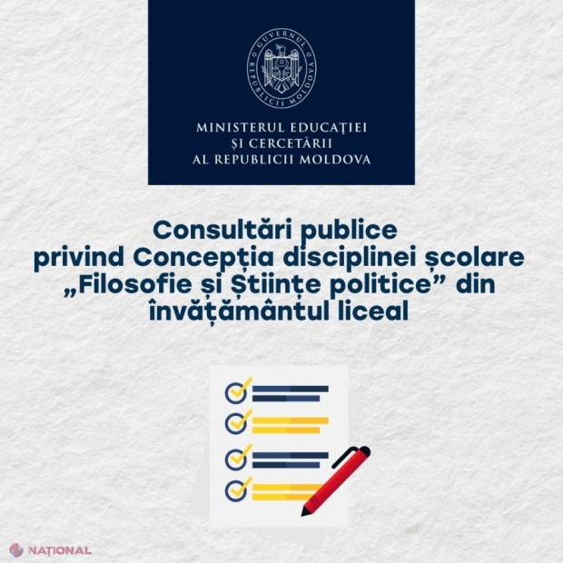 MEC lansează consultări publice pentru noua concepție a disciplinei „Filosofie și Științe politice” în liceu