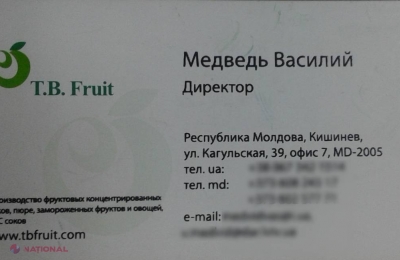 ingura legătură dintre compania ucraineană și cea moldovenească este asemănarea denumirii. În schimb, față de compania-mamă cu sediu de milioane, firma-fiică, SRL „T.B. Fruit”, condusă de ucraineanul Vasili Medvedi, a fost înregistrată într-o clădire dărăpănată din capitală, iar apoi adresa juridică a fost transferată direct în câmp, în Parcul industrial din Edineț. Chiar dacă acel contract încheiat cu administratorul Parcului industrial prevede investiții de peste 20 de milioane de dolari din partea firmei, potrivit datelor de la Camera Înregistrării de Stat, aceasta are active în valoare de doar 5 400 de lei. Potrivit unor surse, SRL „T.B. Fruit” ar fi avut probleme în cadrul concursului organizat de Ministerul Economiei, pentru că nu a putut să prezinte garanții pentru acoperirea financiară a viitoarelor investiții. Totuși, firma a fost selectată, alături de companiile moldovenești „Natur Bravo” și „Orhei-Vit”.