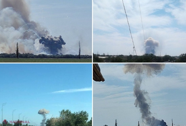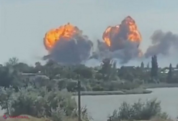 VIDEO // Explozii puternice la o bază MILITARĂ rusă din Crimeea. Cel puțin 12 explozii de intensitate variabilă au fost auzite timp de un minut. Ministerul Apărării de la Moscova infirmă că ar fi vorba de un ATAC