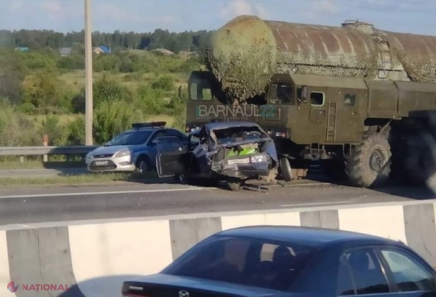 VIDEO // Incident grav în Rusia. Un lansator de rachete balistice NUCLEARE, implicat într-un accident rutier în Barnaul
