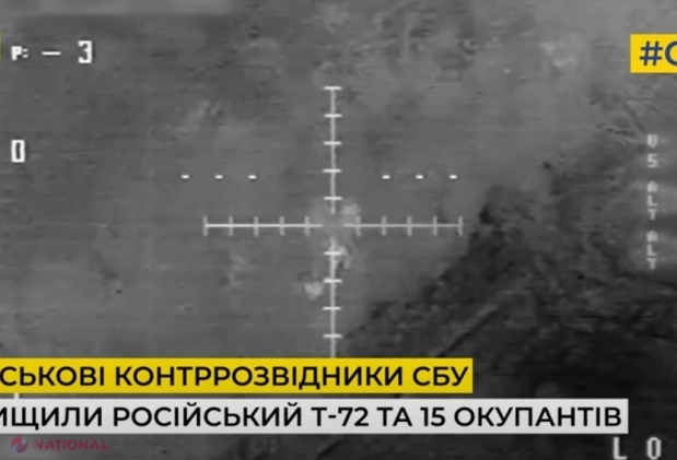 VIDEO // Momentul în care o dronă ucraineană elimină 15 soldați ruși strânși în jurul unui tanc pentru a vedea un film