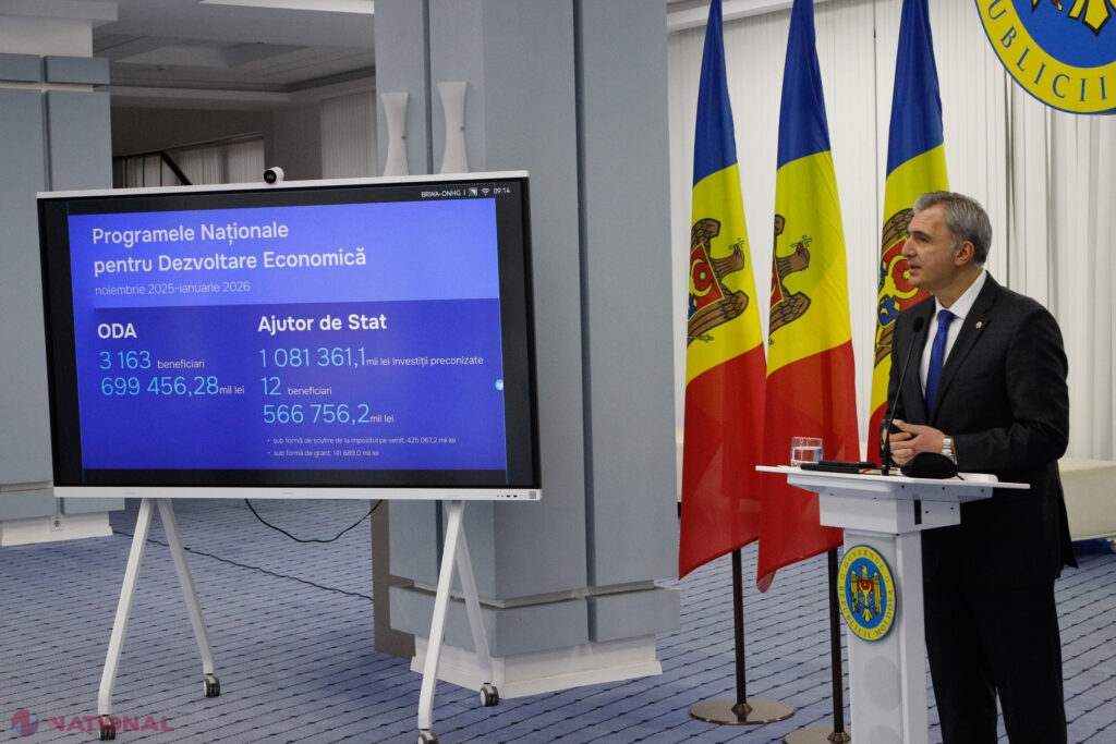 Un rol esențial în susținerea mediului de afaceri l-au avut programele implementate prin Organizația pentru Dezvoltarea Antreprenoriatului (ODA). În perioada de referință au fost acordate circa 699 de milioane de lei sub formă de granturi și facilități fiscale pentru peste 3.100 de companii, fonduri orientate în special spre modernizarea capacităților de producție. Doar prin intermediul a 12 beneficiari ai programului de ajutor de stat au fost generate investiții în economie de peste 1 miliard de lei, în doar trei luni. Aceste măsuri au contribuit direct la crearea a 64.000 de noi locuri de muncă în anul 2025, iar numărul populației ocupate a ajuns la 856.000 de persoane.