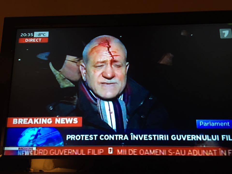 Un protestatar a fost doborât și lovit cu bastonul de cauciuc de Marin Maxian, șeful Direcției ordine publică din cadrul Inspectoratului General de Poliție. Ulterior, persoana a fost dusă de acolo.