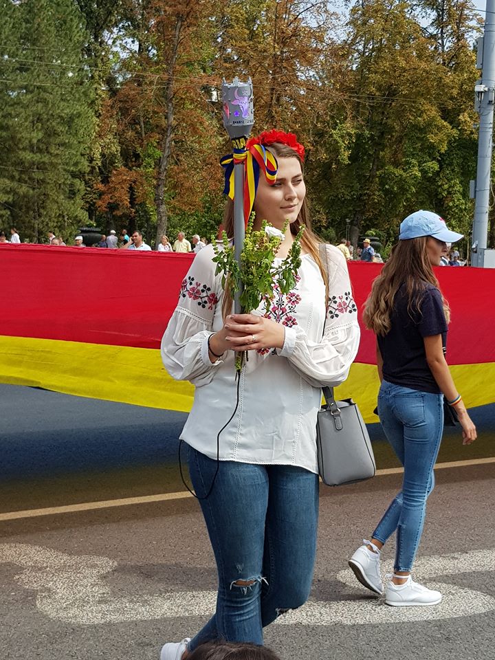 Participanții la Marșul Centenar au adus Flacăra Unirii, aprinsă pe 1 iulie la Alba Iulia, în centrul Chișinăului.