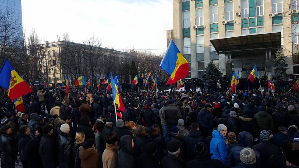 În Piața Marii Adunări Naționale, dar și în fața Parlamentului, s-au adunat mii de manifestanți care sunt nemulțimiți de faptul că Guvernul a fost votat pe furiș, iar președintele Nicolae Timofti a primit jurământul în miez de noapte.