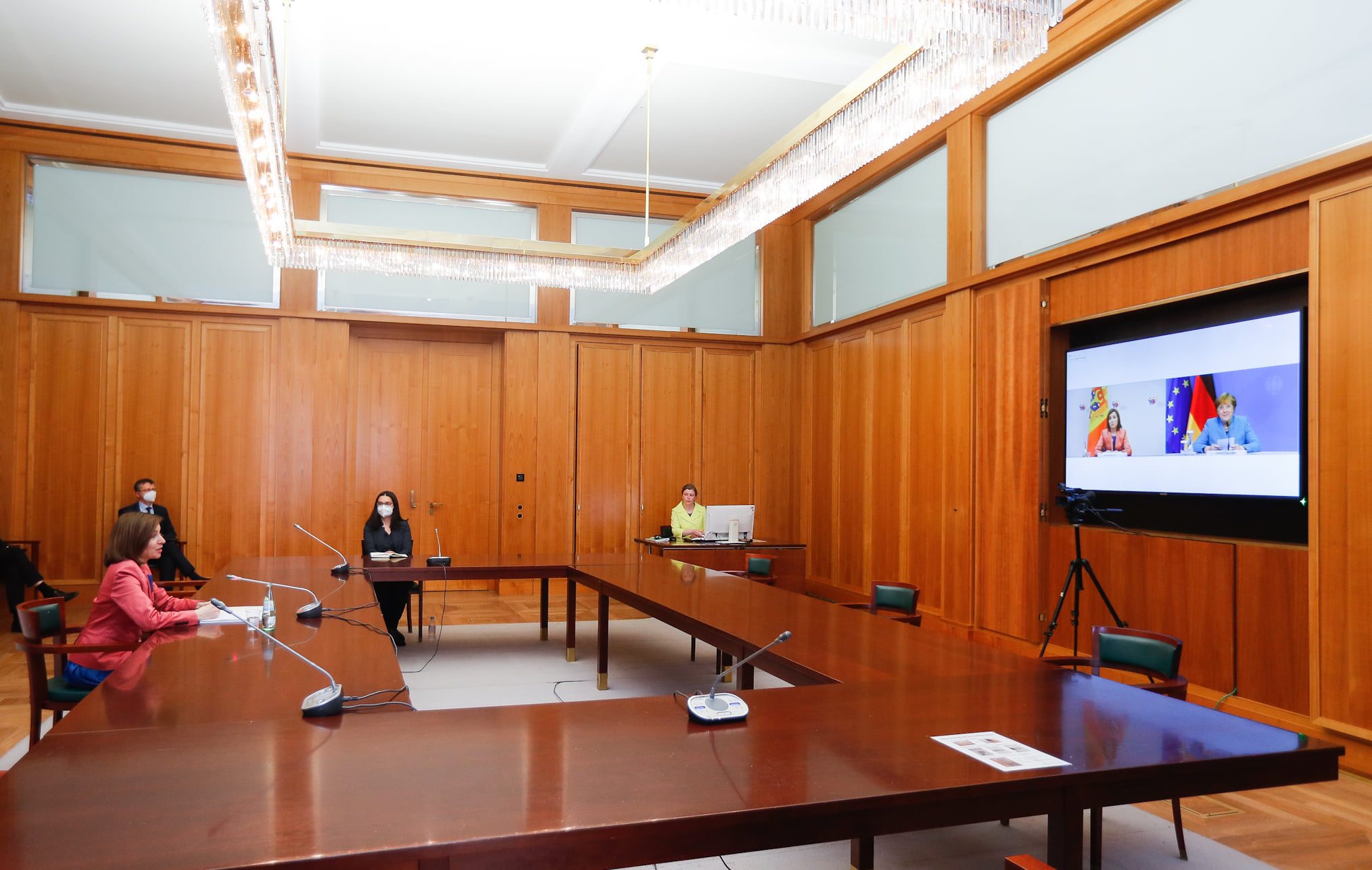 „Am trecut în revistă cu doamna Angela Merkel situația internă din Republica Moldova, provocările cu care ne-am confruntat în ultimele luni și perspectivele pe care le pot deschide alegerile parlamentare anticipate și agenda mea de reforme. Contez pe faptul că Germania va avea grijă ca, în actualele condiții de pandemie, cetățenii Republicii Moldova să poată vota în siguranță la scrutinul din 11 iulie. Doamna cancelar a confirmat intenția țării sale de a trimite observatori la alegeri în cadrul Misiunii OSCE/ODIHR.