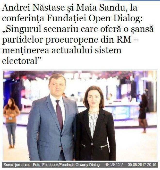 „Liderul Partidului Acțiune și Solidaritate (PAS), Maia Sandu, luptă cu oligarhia din R. Moldova cu armele mediatice ale oligarhului condamnat din Kazahstan, Mukhtar Ablyazov. Sandu a publicat recent pe site-ul opendemocracy.net, publicație on-line finanțată de kazahul fugar Ablyazov, un articol în limba engleză, în care face cu ou și oțet guvernarea din R. Moldova”, scrie site-ul hotnews.md.