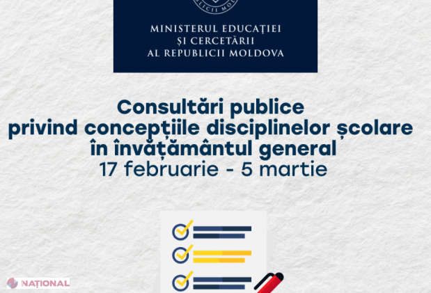 Conținutul prevederilor Concepțiilor disciplinelor școlare în învățământul general și orarul consultărilor publice pot fi consultate pe resursele oficiale puse la dispoziție de Ministerul Educației și Cercetării.