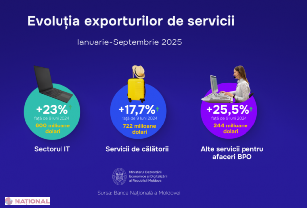 Exporturile de servicii, motorul principal al economiei moldovenești în 2025