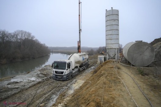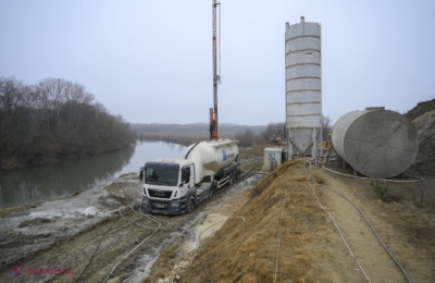 Pe șantier, este utilizată o instalație specializată care poate fora până la 25 m adâncime, umplând găurile cu beton. Această metodă modernă va consolida malul râului Prut și va asigura stabilitatea construcției în fața unor posibile calamități.