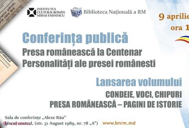 „CONDEIE, VOCI, CHIPURI. PRESA ROMÂNEASCĂ – PAGINI DE ISTORIE”, volum lansat la Chișinău în cadrul conferinței „Presa românească la Centenar. Personalități ale presei românești”