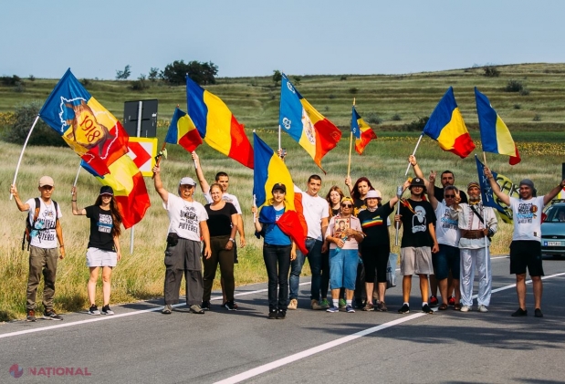 VIDEO // Marșul CENTENARULUI trece Prutul. Participanții mai au de parcurs puțin peste 100 km pentru a ajunge la Chișinău