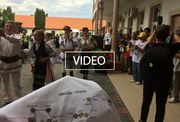 VIDEO // EMOȚIONANT: Participanții la Marșul Centenar, întâmpinați cu fanfară, pâine și sare, cu dansuri și vorbe frumoase la Reghin