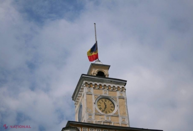 Drapelul de stat de pe clădirea Primăriei municipiului Chişinău a fost coborât astăzi în b...