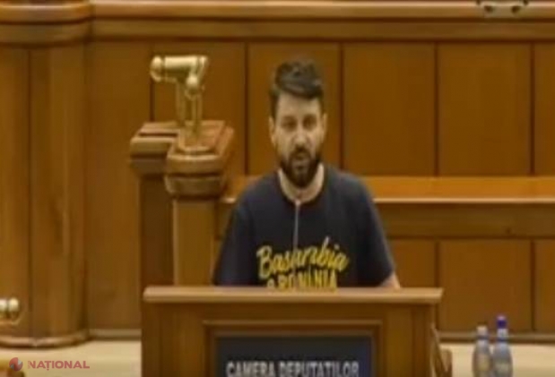 Un deputat român a ieșit astăzi la tribuna Parlamentului în tricou cu inscripția „Basarabia e România”. Vezi declarația legislatorului
