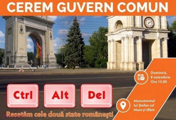 Un flash-mob în cadrul căruia se va cere din nou un guvern comun pentru R. Moldova și Rom...