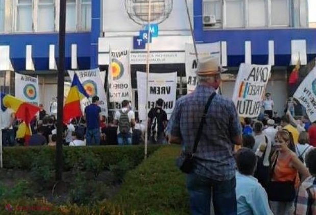 Mai multe zeci de persoane au protestat astăzi în fața companiei publice „Teleradio Moldov...