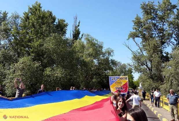Un steag tricolor de 300 de metri a unit simbolic, astăzi, 6 iunie, Republica Moldova cu Ro...