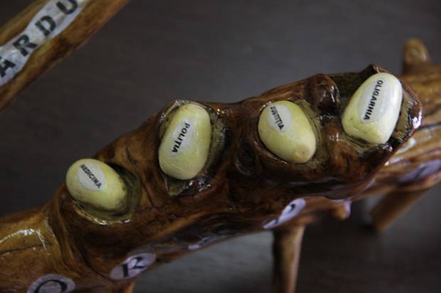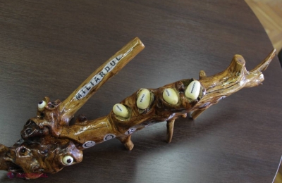 „Am timp berechet și trebuie să-l ocup cu ceva. Mi-am amintit că în armată aveam un camarad care sculpta în lemn și îmi era drag să-l urmăresc. La pensie, m-am gândit să încerc și eu să fac ceva din lemn. Și mi-a ieșit dihania asta. I-am găsit repede și nume - corupția”, povestește bărbatul cum a apărut monstrul.