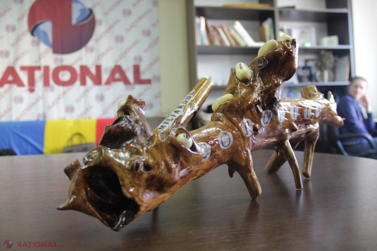 Boris Crețu spune că i-a fost greu să se despartă de prima sa lucrare realizată în lemn, dar și-a dorit ca cineva să o aprecieze. „Cred că la voi va sta la loc de cinste. Să nu uitați că trebuie să luptați cu marea corupție”, a punctat bărbatul. Acesta povestește că i-a venit ideea să sculpteze un dragon imediat ce a văzut ciotul cu ramificații în pădure. L-a luat acasă și s-a apucat de lucru.