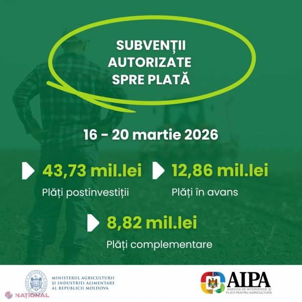 AIPA alocă 65,41 milioane de lei pentru subvenții în agricultură în perioada 16-20 martie 2026