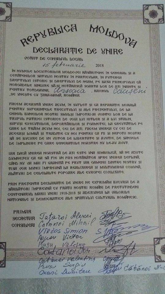 Este vorba de satul Capaclia din raionul Cantemir, unde au semnat primarul și consilierii locali, și satul Ursoaia din Căușeni, unde consilierii și-au exprimat dorința de a se uni cu România.