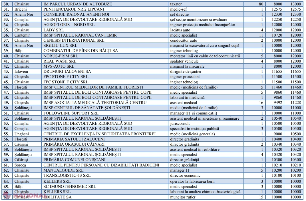 Cu câte 14 - 19 mii de lei lunar vor fi remunerați doi medici specialiști care se vor angaja și vor activa la Spitalul Clinic Militar Central din municipiul Chișinău. La fel, 15 - 18 mii lei vor fi oferiți unui medic ftiziopulmonolog din raionul Cantemir.