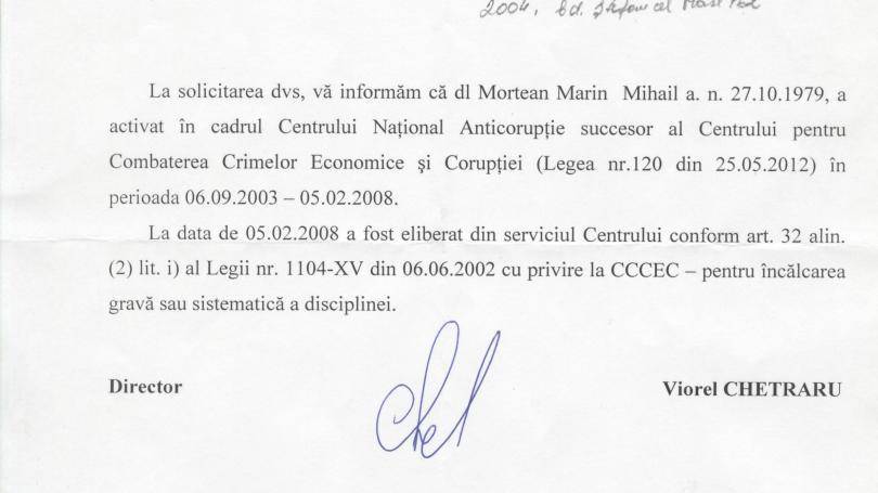 Menționăm că, anterior, Viorel Chetraru, șeful Centrului Național Anticorupție, a confirmat faptul că Mortean a fost demis din cadrul CCCEC.
