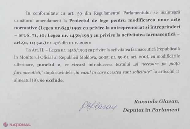 DOC // Platforma „Pentru Moldova” prezintă DOVADA că nu este autorul unui amendament legat de piața farmaceutică