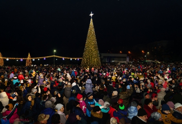 FOTO // Au luat exemplu de la autoritățile din Orhei. La Taraclia a fost inaugurat, cu mare fast, Pomul de Crăciun. Circa 4 000 de persoane au participat la eveniment