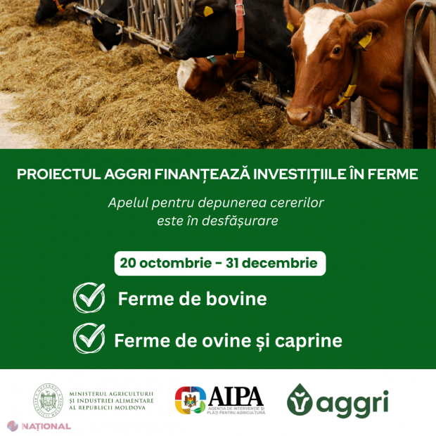 Fermierii din sectorul zootehnic pot accesa granturi de până la 1 milion USD pentru modernizarea fermelor prin proiectul AGGRI finanțat de Banca Mondială