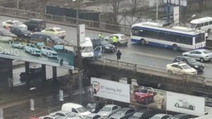 VIDEO // Momentul IMPACTULUI! Poliția Capitalei oferă DETALII despre accidentul bizar produs ieri pe podul de pe str. Ismail, când un microbuz a fost la un pas să cadă în gol