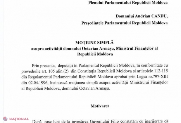Fracţiunea parlamentară a PSRM a înregistrat astăzi o moţiune simplă de cenzură împotriva ...