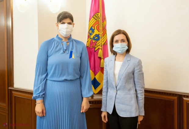 Parchetul European, pe urmele FUGARILOR din R. Moldova. Laura Codruța Kövesi, cu steagul Ucrainei în piept și cu MASCĂ de protecție, a fost primită de Maia Sandu
