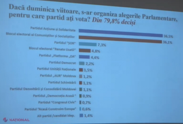 SONDAJ // Trei FORMAȚIUNI ar accede în Parlament, iar altele două ar fi la limita pragului de 5%. Blocul „Comuniștilor și Socialiștilor” ar EGALA Partidul Acțiune și Solidaritate?