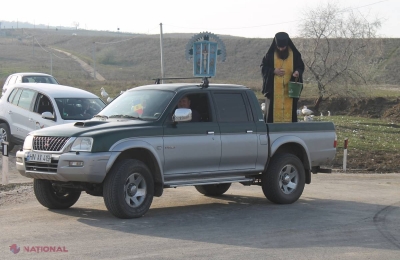 POZA ZILEI // Un preot sfințește un drum din remorca unui jeep