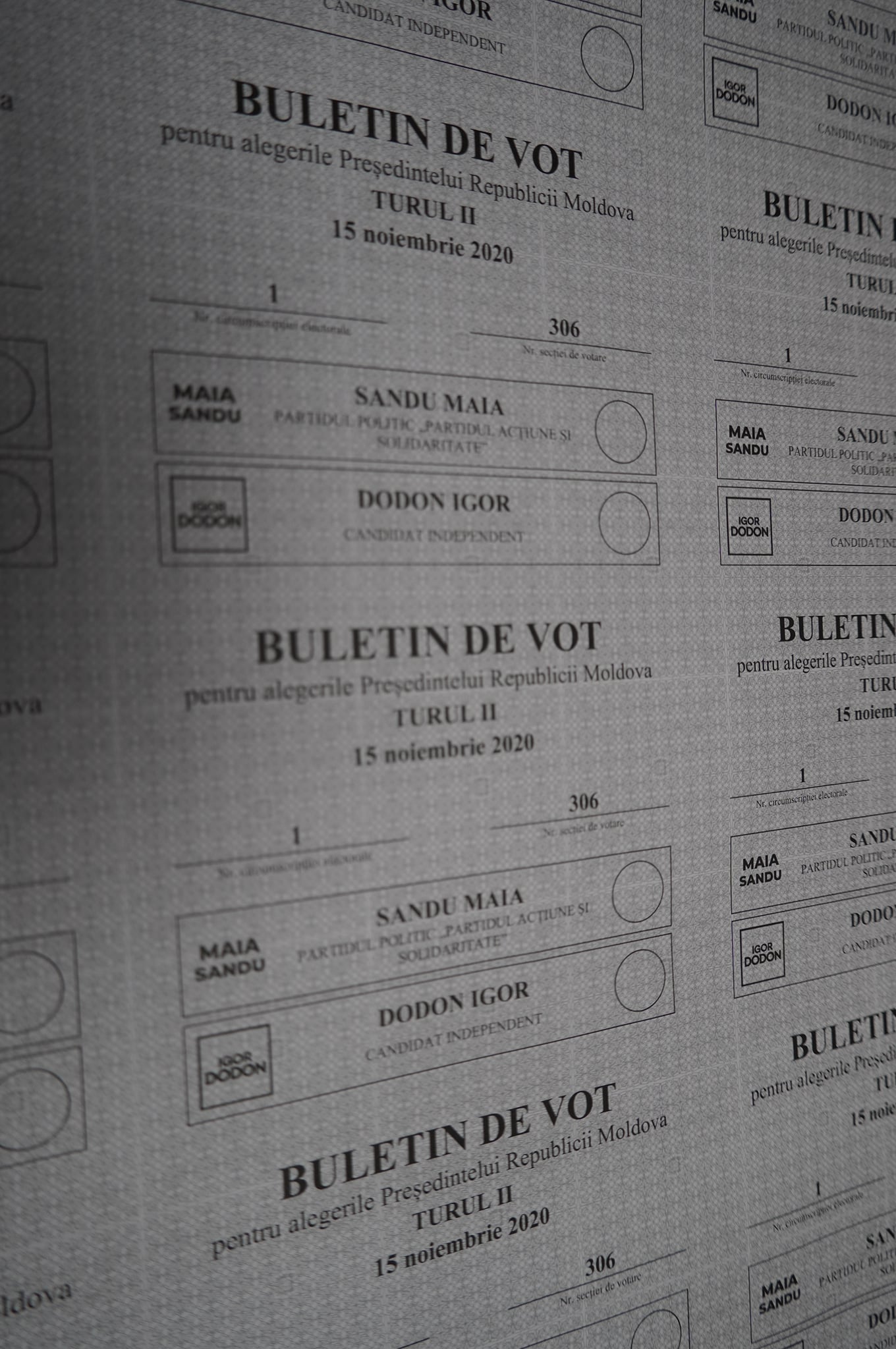 Pentru cel de-al doilea tur de scrutin prezidențial vor fi tipărite în total 3 605 517 buletine de vot - 671 500 pentru secțiile electorale deschise în străinătate și 2 934 017 de buletine pentru secțiile din R. Moldova, inclusiv 2 168 620 în limba română și 765 397 în limba rusă.