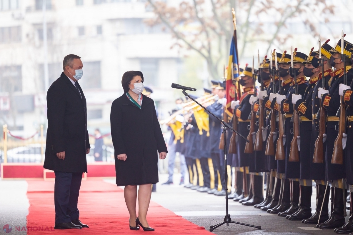 „Doresc să mă folosesc de această ocazie pentru a adresa mulțumirile noastre cele mai sincere pentru solidaritatea generoasă a României față de cetățenii noștri, care au beneficiat de sute de mii de doze de vaccin anti-COVID, sau față de medicii din R. Moldova, care au primit echipamente de protecție și alte materiale când acestea cu greu se puteau găsi pe piețele internaționale. Iar în contextul crizei energetice, România din nou a sărit în ajutor R. Moldova, gazul livrat în octombrie ajutându-ne să menținem presiunea în sistem, pe fondul limitărilor volumelor de gaze cu care ne-am confruntat. De asemenea, datorită finalizării conductei de transport al gazelor naturale Iași - Ungheni - Chișinău, R. Moldova va putea face pași importanți în asigurarea independenței și securității energetice. Încă o dată vă mulțumim că ne-ați fost și ne sunteți alături în această perioadă dificilă”, a subliniat prim-ministra.