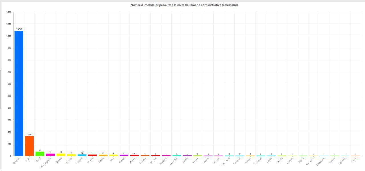 Majoritatea contractelor au fost încheiate în municipiile Chișinău (1 042) și Bălți (166), Cahul (35), UTA Găgăuzia – (19), Soroca – (19), Ungheni - (15), Criuleni – (13) etc.