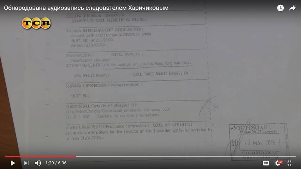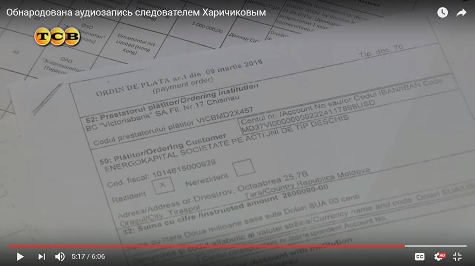 „Ia să examinăm minuţios dispoziţiile de plată din imagine... Ce vedem? EnergoKapital (cont deschis la Victoriabank filiala 17) transferă bani la firma off-shore „Ornamental Art limited”, care are conturi deschise la banca letonă ABLV.